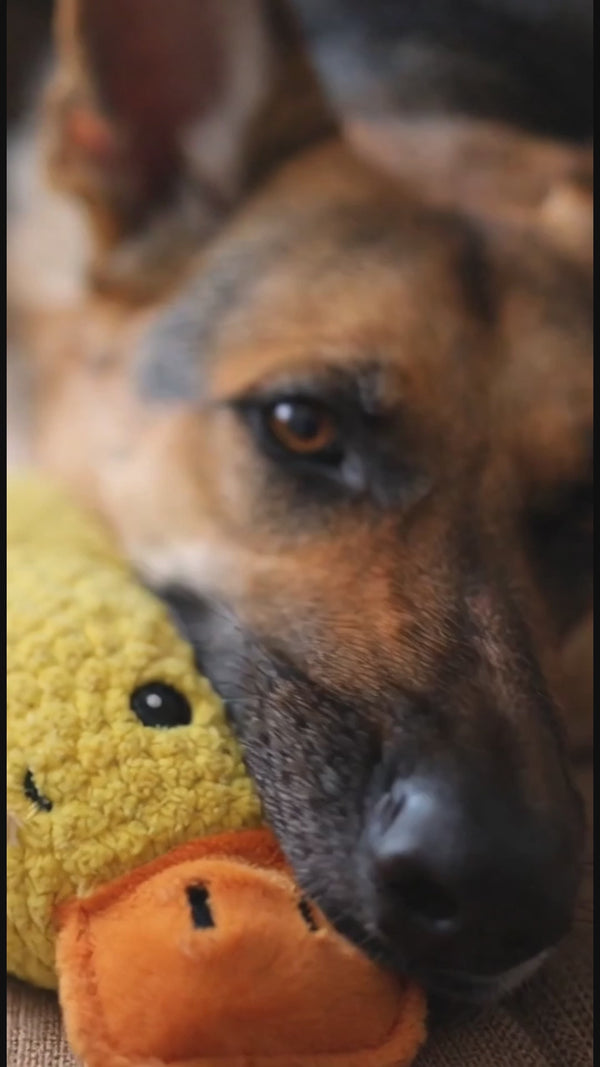 Onderzoek wijst uit dat een knuffel kan helpen om gevoelens van eenzaamheid en stress bij honden te verminderen, vooral wanneer ze alleen thuis zijn. Deze eend is niet alleen leuk, maar biedt ook troost, geruststelling en een gevoel van gezelschap wanneer je hond dat het meest nodig heeft.